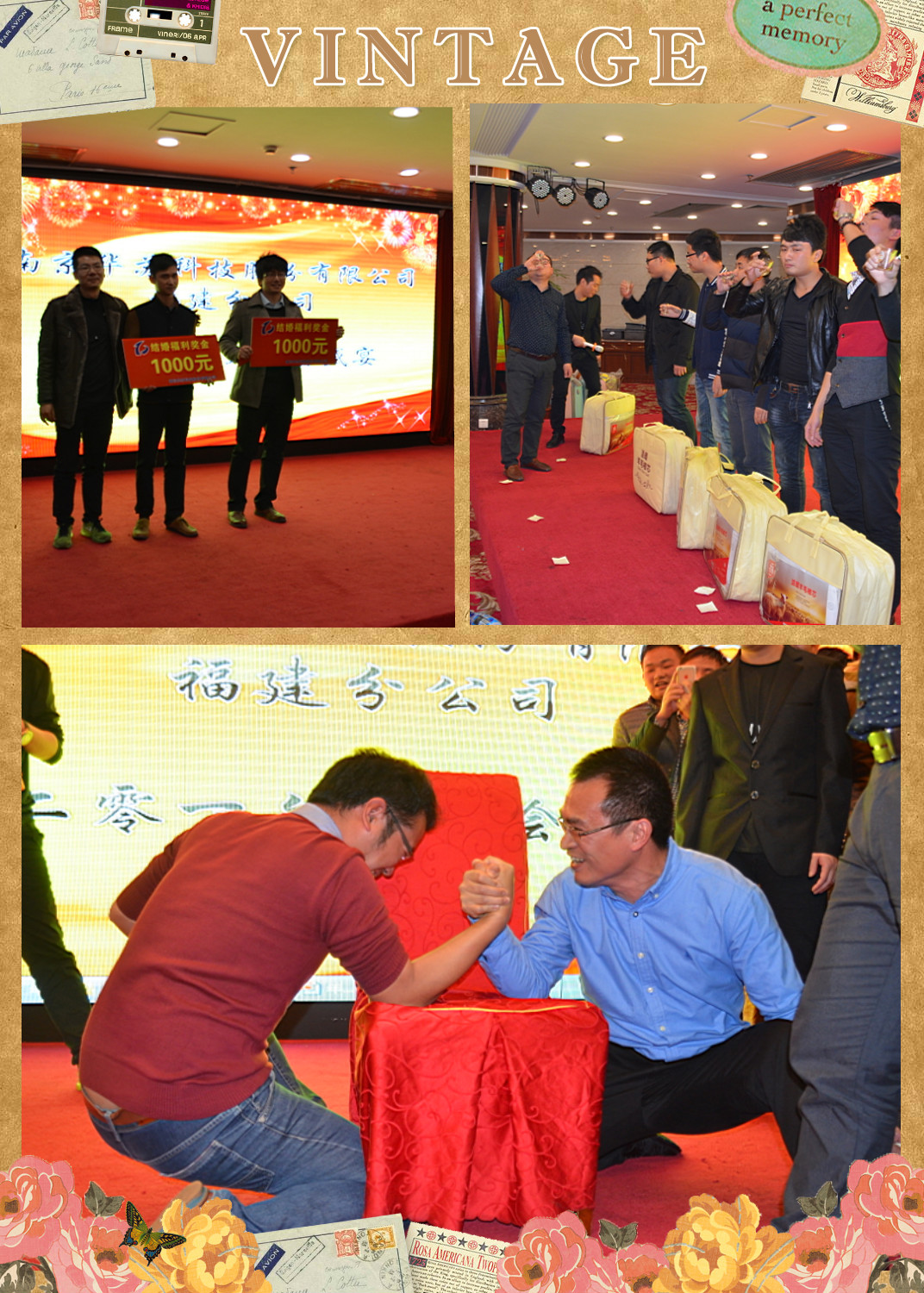 歡聲笑語在耳際傳遞,預熱了每個人的內心,雷鳴般的掌聲火爆了整個舞臺,熱辣的舞蹈、深情的歌謠、詼諧幽默的小品相聲等一系列伙伴們精心編排的表演,讓臺下所有人都忘卻了美味,只顧拍手叫好;“找爸爸”、“猜歌名”等游戲互動更是讓現場氣氛高潮不斷。除此之外,與伙伴們早已玩成一片的領導們也都紛紛上臺獻唱,就連華蘇大boss也在與伙伴們親切地合影之后親自上陣,投身進了扳手腕比拼之中。