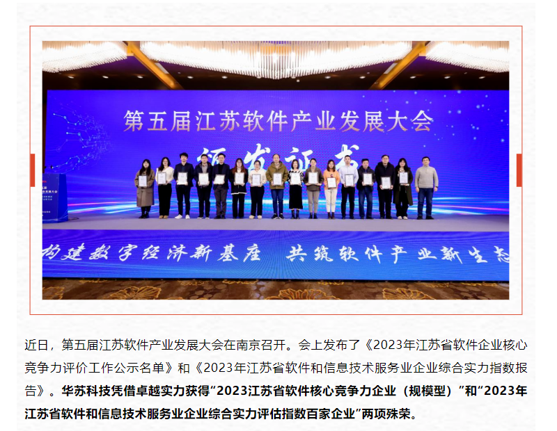 和“2023年江蘇省軟件和信息技術服務業企業綜合實力評估指數百家企業”兩項殊榮