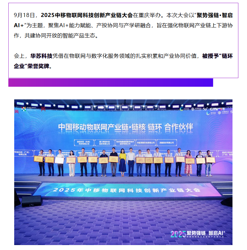 華蘇科技成為中移物聯網“鏈環企業”,攜手共促AIoT產業融通發展