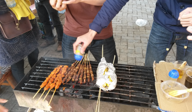 往前走,便能看到在人工湖邊上的鐵架上有正在待烤的肥羊,誘人的香味在鼻間彌漫,令人忍不住想上去咬一口,但一想到接下來還有重要的燒烤任務(wù),伙伴們咽了咽口水,繼續(xù)前行!