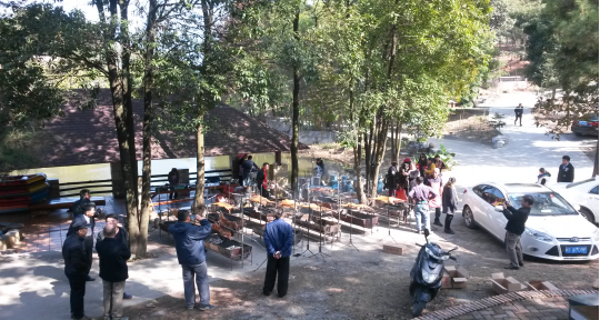 提前準備好了各色食材和需要用到的工具,華蘇龍巖項目的小伙伴們便早早出發(fā)來到了目的地。在環(huán)山群伺的中央地帶,有一座小巧靈瓏的“鄉(xiāng)村大舞臺”,半山腰上別墅前的幾棵翠竹隱約可見,還有形態(tài)各異的松樹相映成趣。坐在石凳上,忘卻塵世的浮華,看竹葉簌簌,聆聽松濤陣陣,仿佛與自然相融。